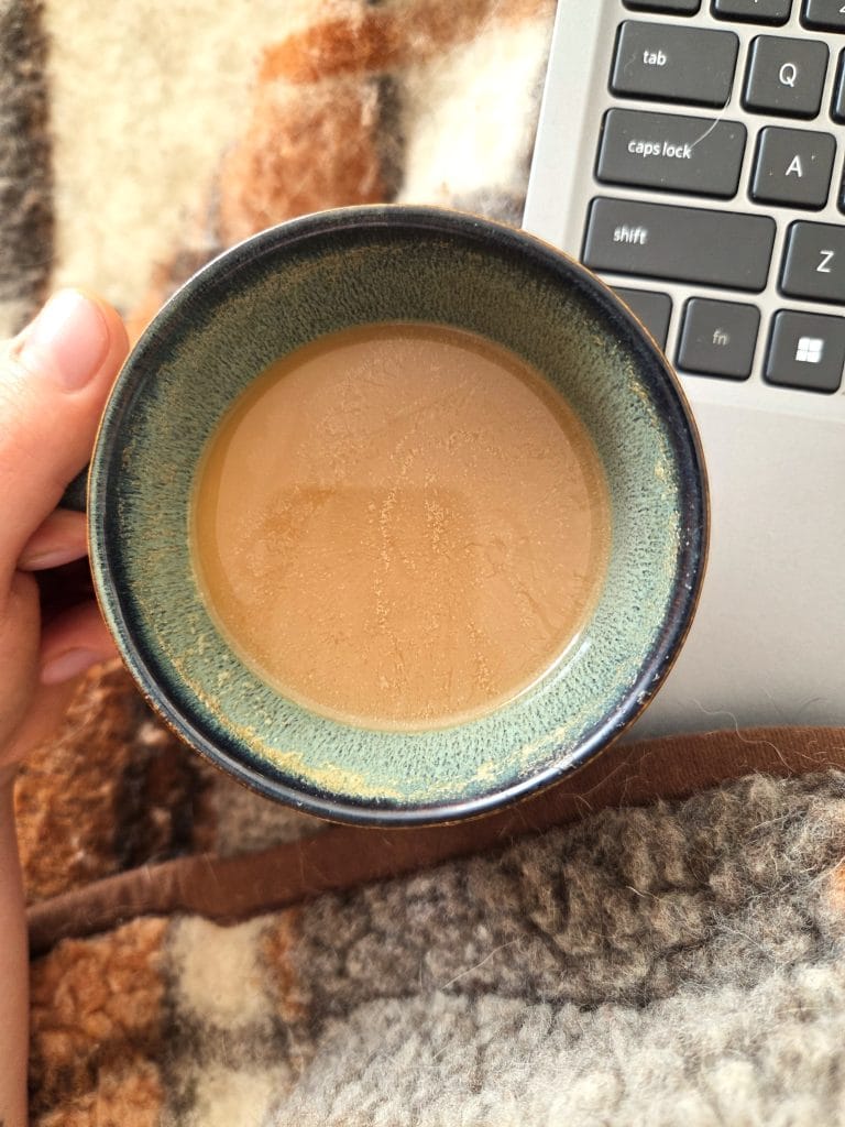 Ach, gadam o herbatach, ale oczywiście nikt nie zabroni Ci pić kawy czy kakałka! 😁 Ja jednak kawę odstawiłam prawie całkowicie, a jeśli już piję to bezkofeinową. Nie ma w tym żadnej filozofii. Po prostu nie czułam żadnych korzyści z picia kawy, a do tego dostałam wstrętu do jej smaku. Bezkofeinowa (kupuję z Arkom i parzę w aeropresie) jest dla mnie okej. No ale właśnie, tylko okej, dlatego w tym fragmencie rozpłynęłam się nad herbatami. 😀
